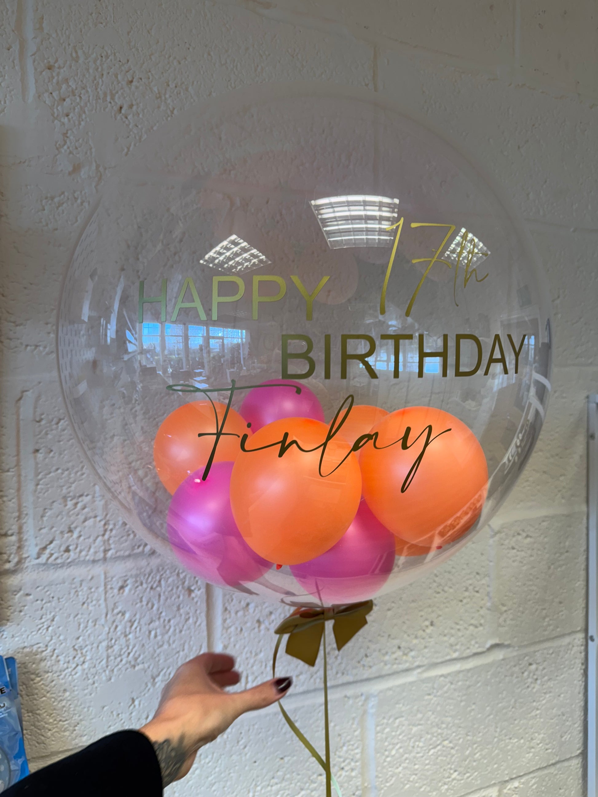 Get ready to pop with joy! This Bubble Balloon is a see-through wonder packed with mini balloons that dance inside. Customise the colours and add a personal touch, perfect for parties or just because! (Because who doesn’t need a balloon buddy?) It's like a party in a bubble!