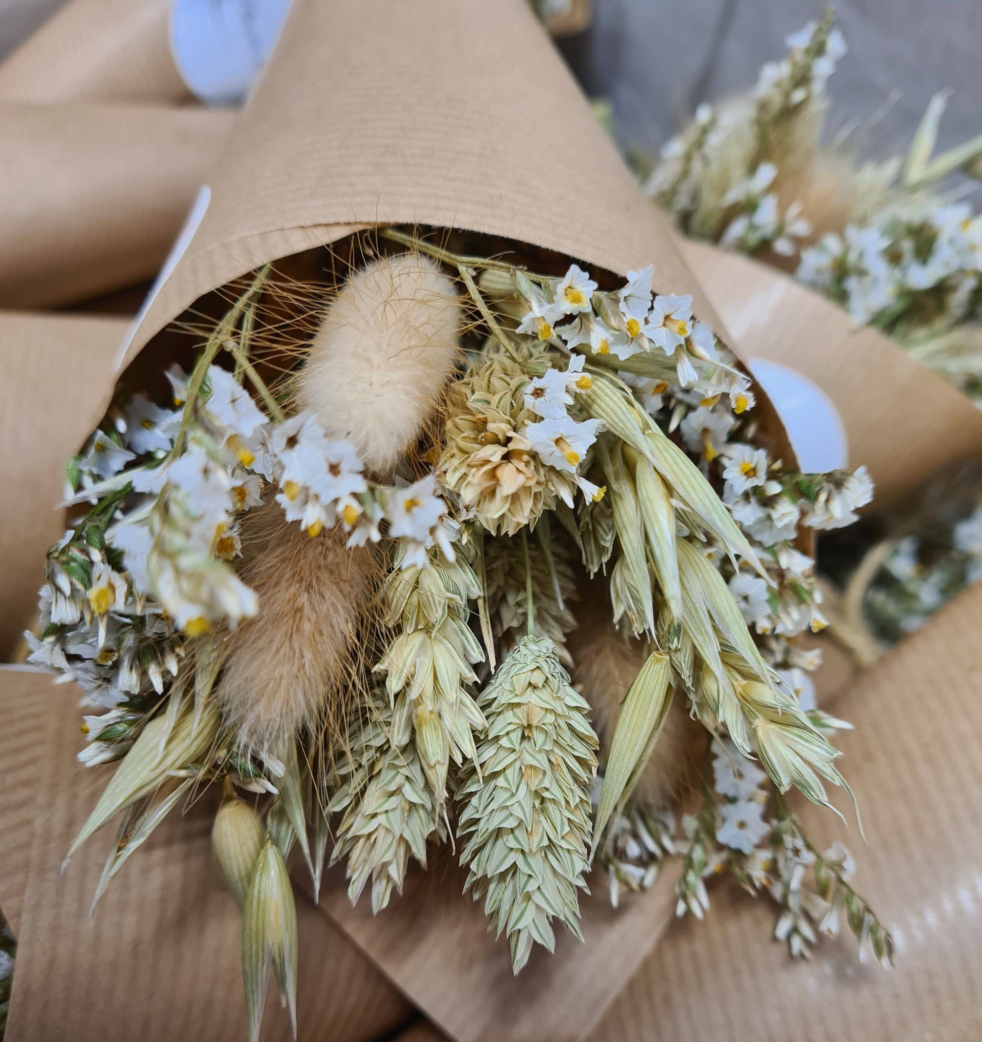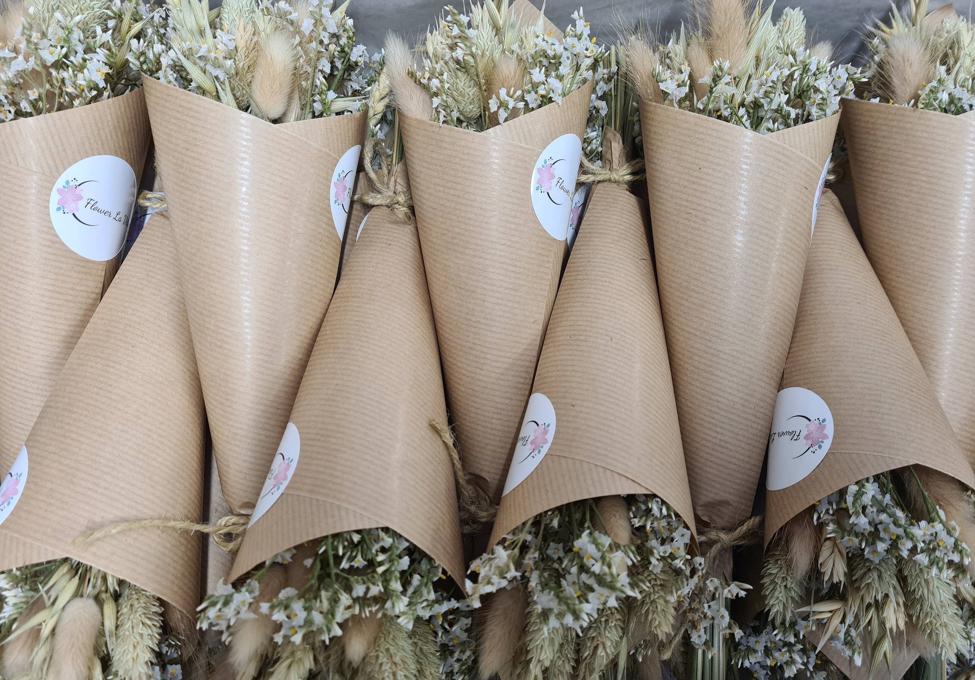 Mini bouquet , ready for display, tied together and wrapped in eco brown paper. Size: Approx 25 cm tall.